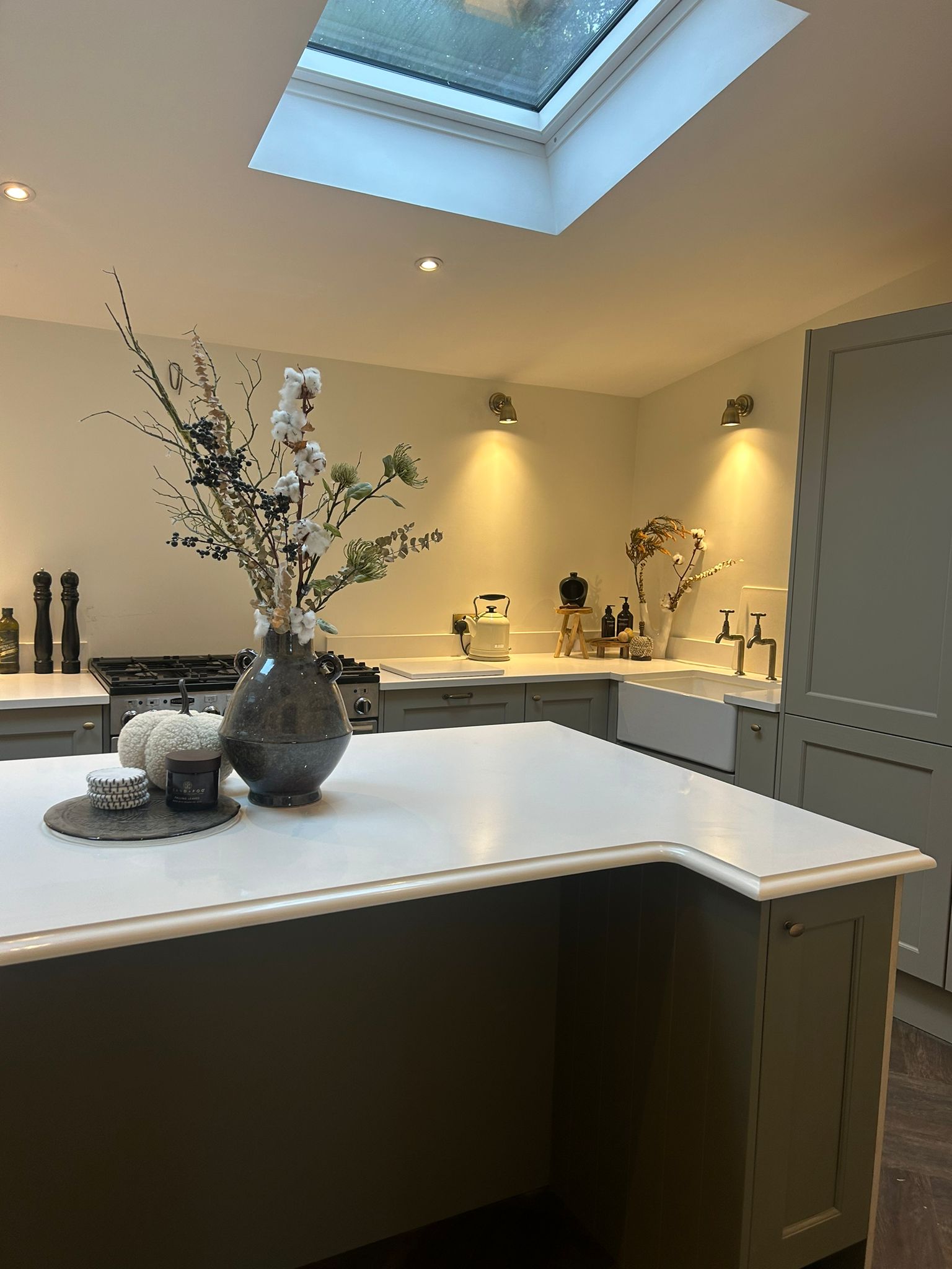 For the Berg’s, we fitted installed this timeless white quartz kitchen worktop in Leeds, a look completed with Superior Calacatta Fusion Quartz surfaces.